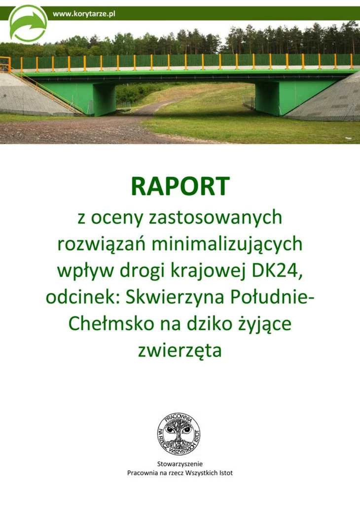 - Raport z oceny zastosowanych rozwiązań minimalizujących wpływ drogi krajowej DK24, odcinek Skwierzyna Południe - Chełmsko na dziko żyjące zwierzęta | POBIERZ RAPORT, PDF, 2MB