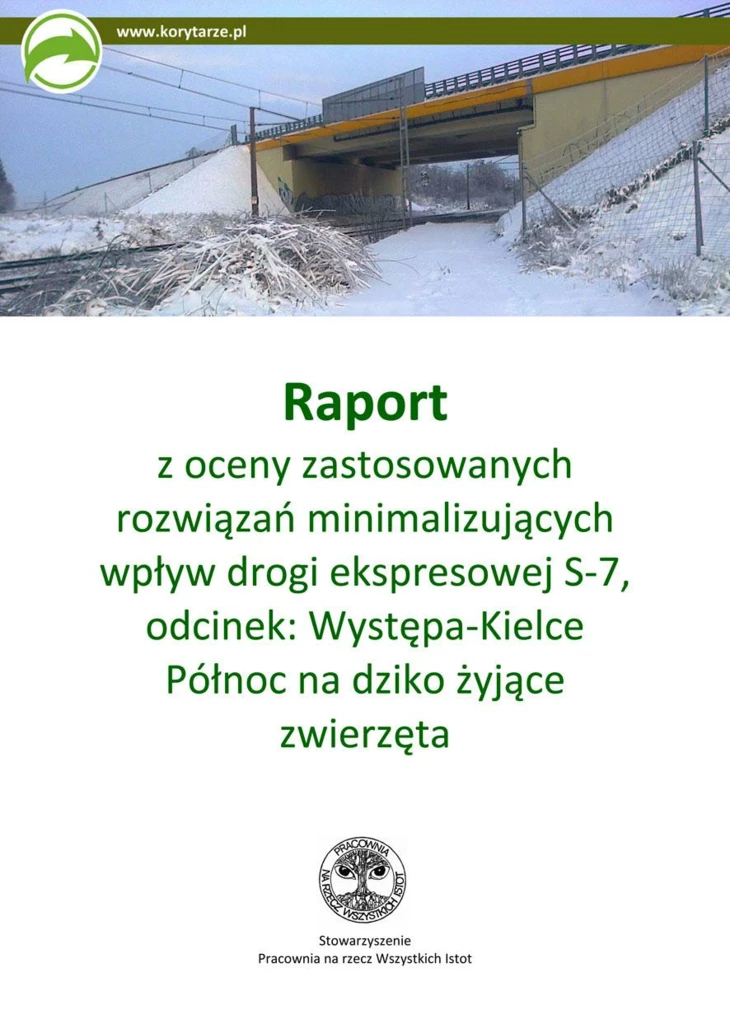 - Raport z oceny zastosowanych rozwiązań minimalizujących wpływ drogi ekspresowej S-7, odcinek Występa - Kielce Północ na dziko żyjące zwierzęta | POBIERZ RAPORT, PDF, 2MB